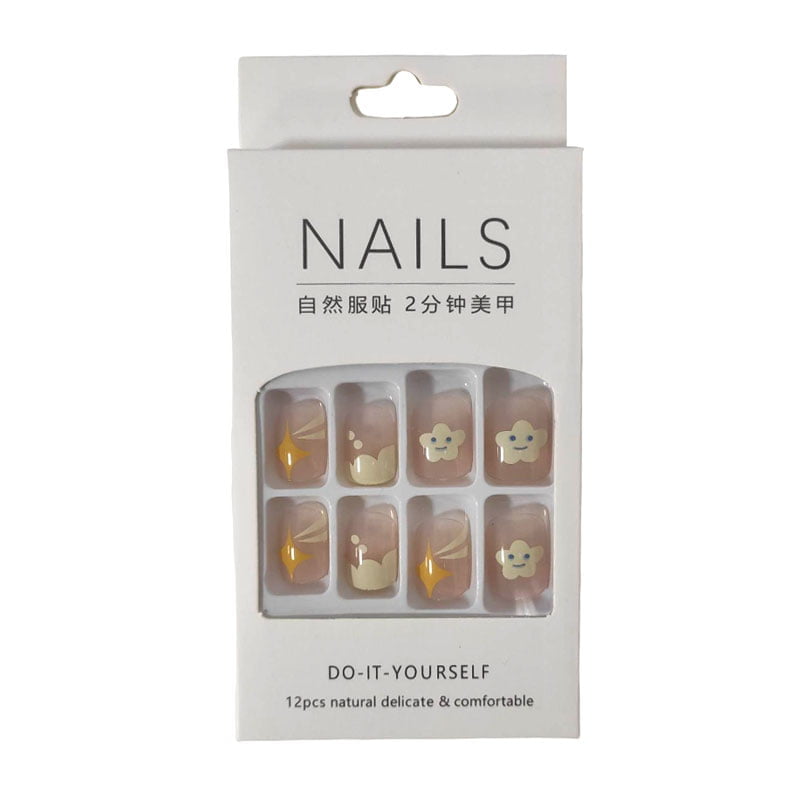 Ψεύτικα, αυτοκόλλητα νύχια σε πολλά χρώματα και σχέδια. Οδηγίες χρήσης: Πιέστε το ψεύτικο νύχι πάνω στο φυσικό για τουλάχιστον 10 δευτερόλεπτα. Για μεγαλύτερη διάρκεια, πιέζετε τα ψεύτικα νύχια απαλά μερικές φορές την ημέρα, ειδικά μετά την επαφή με το νερό. Για να τα αφαιρέσετε, βάλτε τα χέρια σας σε νερό για 10 λεπτά και αφαιρέστε κάθε νύχι απαλά, ξεκινώντας από το πλάι.