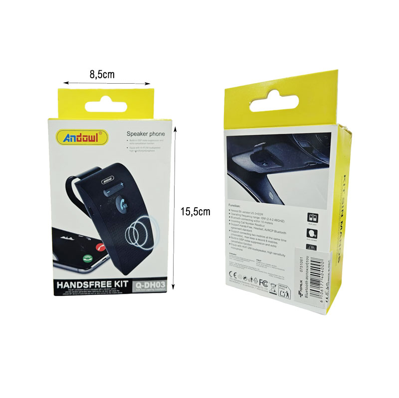 Η ανοιχτή ακουστική Andowl Q-DH03 είναι ιδανική λύση για ασφαλείς τηλεφωνικές κλήσεις κατά την οδήγηση. Συνδέεται μέσω Bluetooth με το κινητό σας τηλέφωνο και προσφέρει καθαρό ήχο χάρη στο ενσωματωμένο μικρόφωνο και ηχείο υψηλής ευαισθησίας. Διαθέτει μαγνητικό στήριγμα για εύκολη τοποθέτηση στο σκίαστρο του αυτοκινήτου και υποστηρίζει σύνδεση με δύο συσκευές ταυτόχρονα. Λειτουργεί με ενσωματωμένη επαναφορτιζόμενη μπαταρία και φορτίζεται μέσω USB. Ιδανική για όσους αναζητούν άνεση και ασφάλεια στην επικοινωνία κατά την οδήγηση.