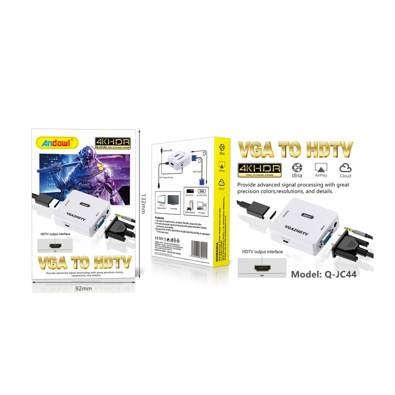 Αντάπτορας που συνδέει μια θηλυκή θύρα 3.5mm και VGA με μια θηλυκή θύρα HDMI.
