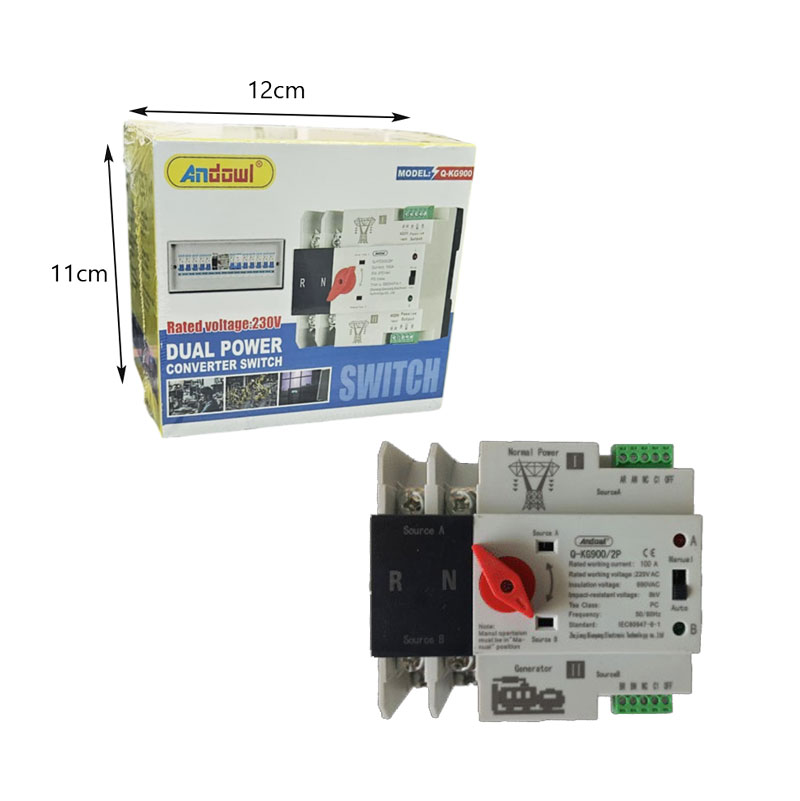 Διακόπτης διπλού μετατροπέα ισχύος (Dual Power Converter Switch) Andowl Q-KG900 είναι ένα αξιόπιστο και αποδοτικό εργαλείο για την αυτόματη εναλλαγή μεταξύ δύο πηγών ενέργειας, εξασφαλίζοντας αδιάλειπτη τροφοδοσία στις συσκευές σας.