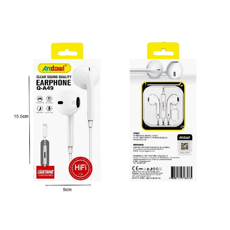 Andowl Ενσύρματα Ακουστικά με Σύνδεση Lightning Q-A49 – Clear Sound Earphone
