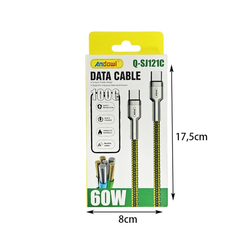 Υψηλή απόδοση και απόλυτη ασφάλεια στη φόρτιση και τη μεταφορά δεδομένων! Το Andowl Q-SJ121C καλώδιο προσφέρει ταχεία φόρτιση έως 60W, ενώ ταυτόχρονα προστατεύει τις συσκευές σου χάρη στα προηγμένα συστήματα ασφαλείας και τα πυρίμαχα υλικά κατασκευής.