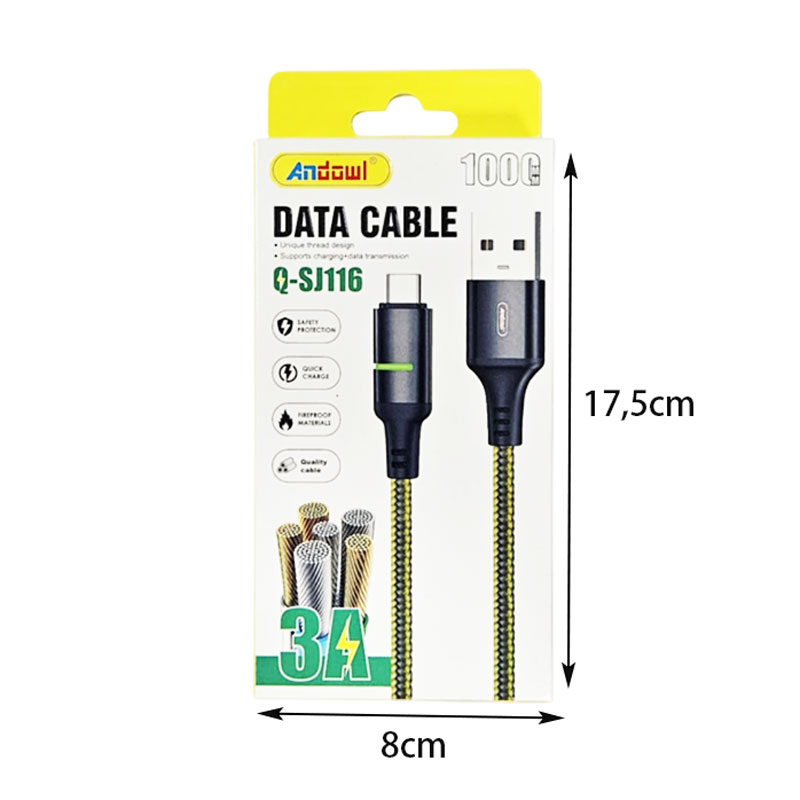 Andowl Καλώδιο Δεδομένων USB σε Type-C – 3A Q-SJ116 – Data Cable