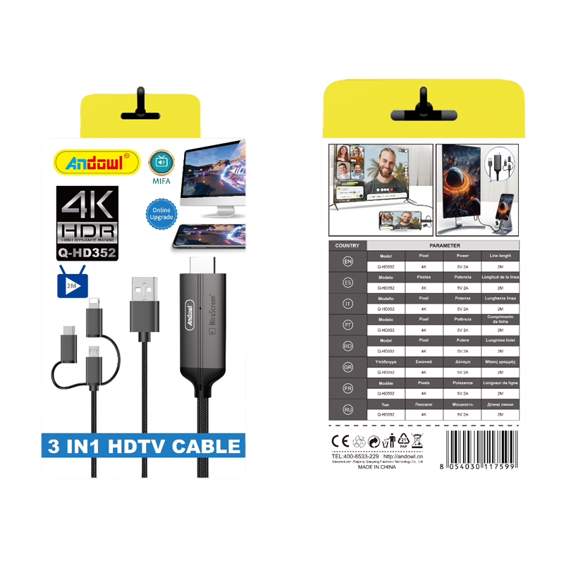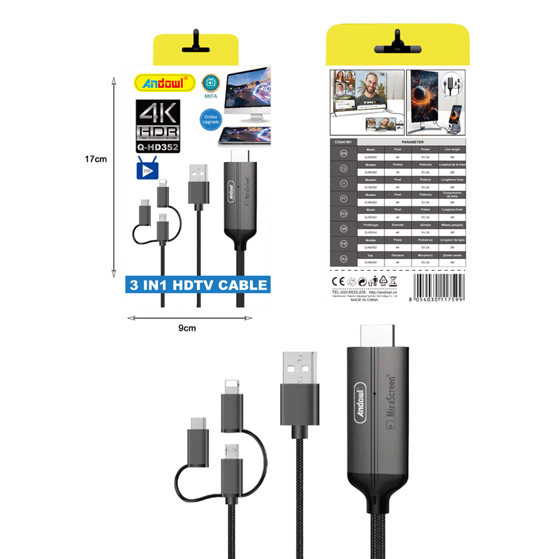 Andowl Καλώδιο USB σε HDTV 3in1 4K HDR Q-HD352 – 3in1 HDTV Cable