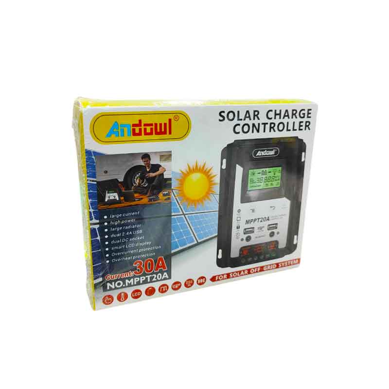 Ρυθμιστής φόρτισης για φωτοβολταϊκά panel με οθόνη LCD. Κατάλληλος για φωτοβολταϊκά συστήματα 12V ή 24V ισχύος 20A. Μεγάλη ευανάγνωστη LCD οθόνη για εύκολη απεικόνιση πληροφοριών όπως: ρεύμα φόρτισης, ρεύμα εκφόρτισης και τάση μπαταρίας. Είναι κατασκευασμένος από υψηλής ποιότητας υλικά και έχει μεγάλη αντοχή στη μακροχρόνια χρήση.