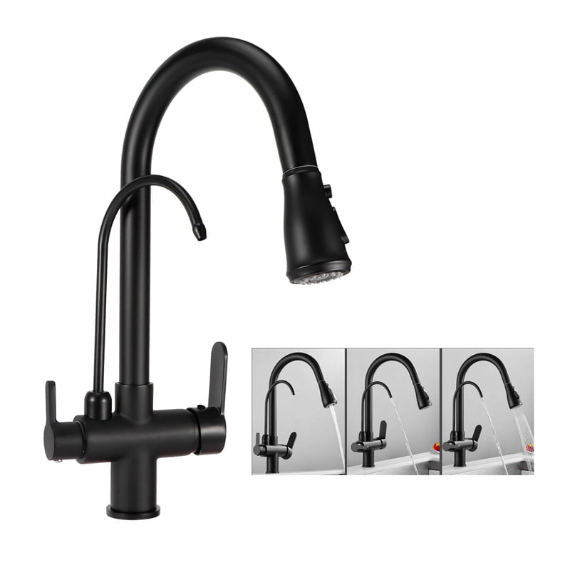 Μπαταρία Κουζίνας Μαύρη Ματ Διπλή Με Βρυσάκι – Βρύση Κουζίνας – Kitchen faucet