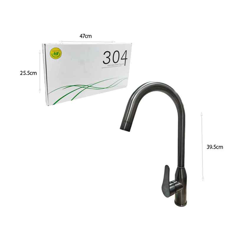 Ποιοτική μπαταρία νεροχύτη από ανοξείδωτο ατσάλι με μίκτη, σχεδιασμένη για μέγιστη αντοχή και μακροχρόνια χρήση. Διαθέτει ψηλό καμπύλο στόμιο ύψους 39,5 cm, που εξασφαλίζει άνεση στο πλύσιμο μεγάλων σκευών και ευκολία στην καθημερινή χρήση.