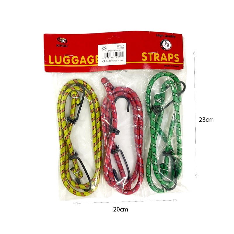 Τα Ελαστικά Σχοινιά με Γάντζους / Ιμάντες Αποσκευών (Luggage Straps) είναι ένα πρακτικό σετ για την ασφαλή πρόσδεση και μεταφορά αποσκευών, φορτίων ή άλλων αντικειμένων κατά τις μετακινήσεις σας.