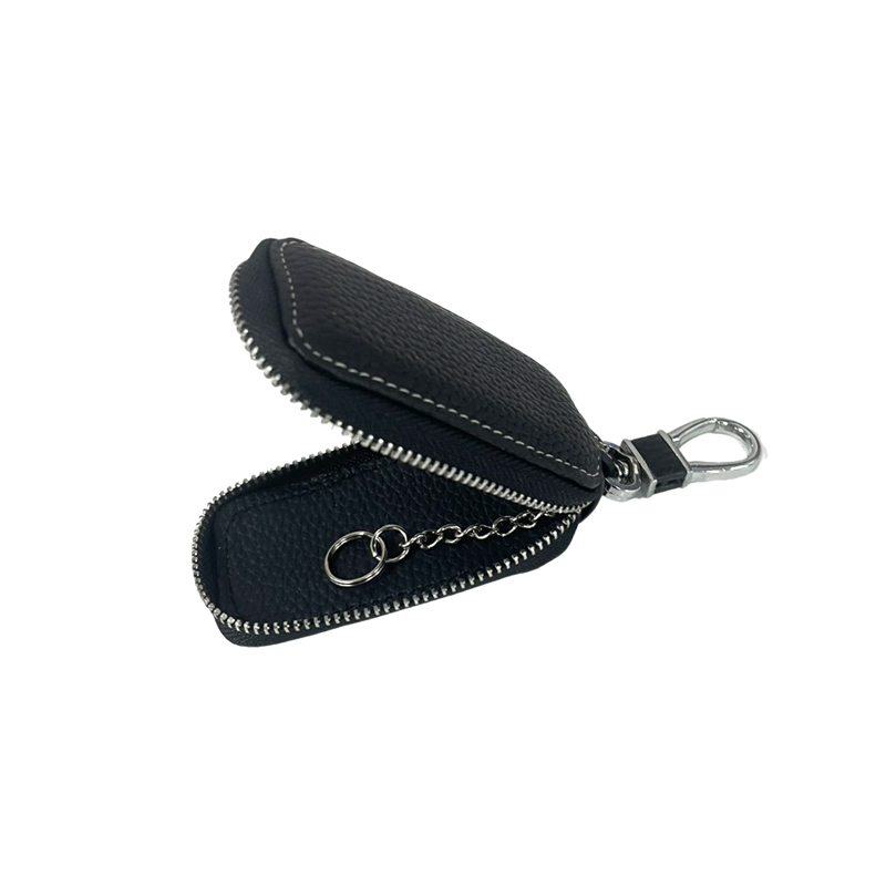 Κλειδοθήκη μπρελόκ από μαύρη δερματίνη στο εξωτερικό. Εξωτερικό κρίκο με αλυσιδάκι για να κρεμάτε τα κλειδιά σας κ.α.