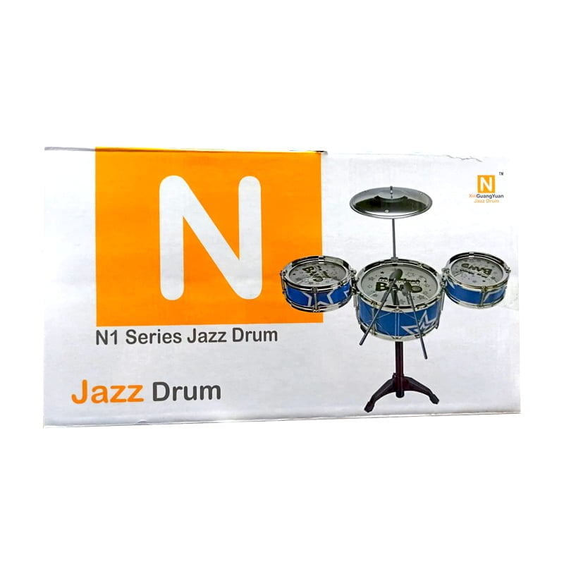 Ένα καταπληκτικό σύνολο παιδικών ντραμς με μεγάλο τύμπανο, 2 μικρά τύμπανα, 1 ζευγάρι μπαγκέτες.