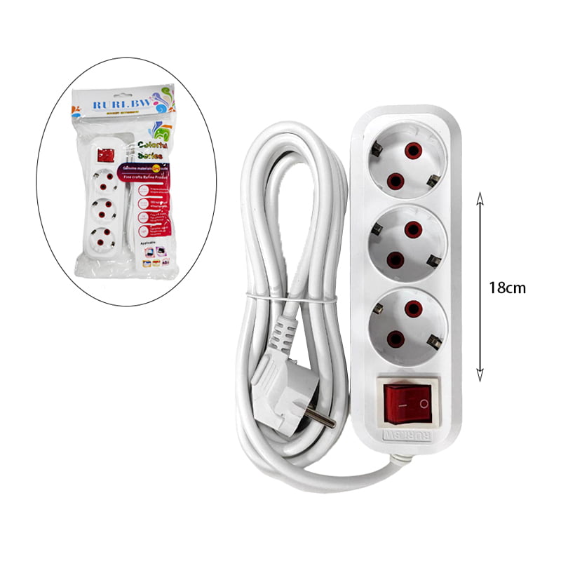 Πολύμπριζο 3 Θέσεων με καλώδιο 3 μέτρα και διακόπτη Ruri.BW – 3 Position Socket Extension 3m