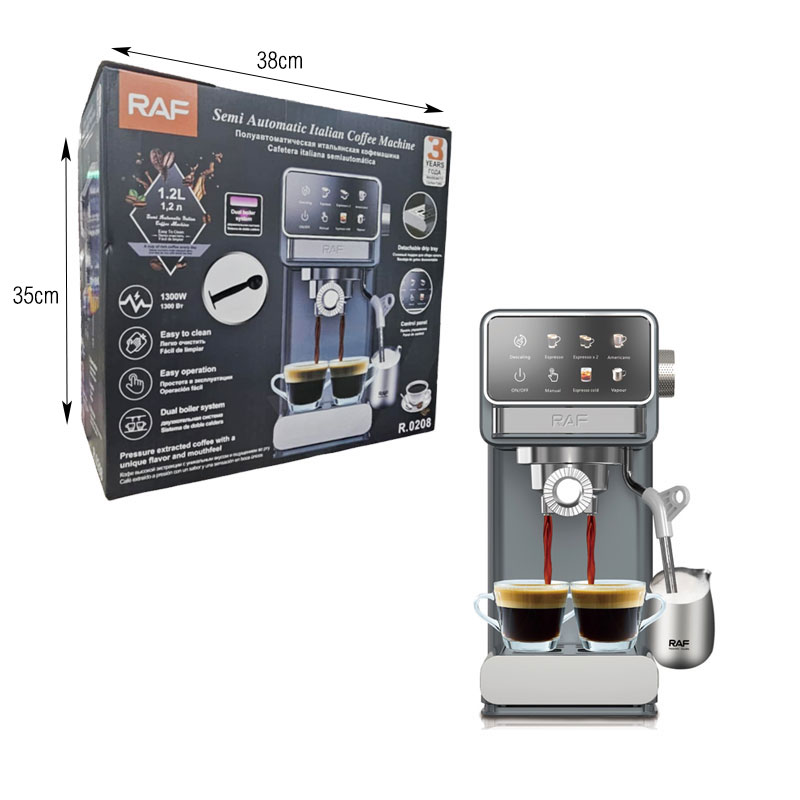 RAF Ημιαυτόματη Ιταλική Καφετιέρα Espresso με Διπλό Λέβητα R-0208 – Semi Automatic Italian Espresso Coffee Machine
