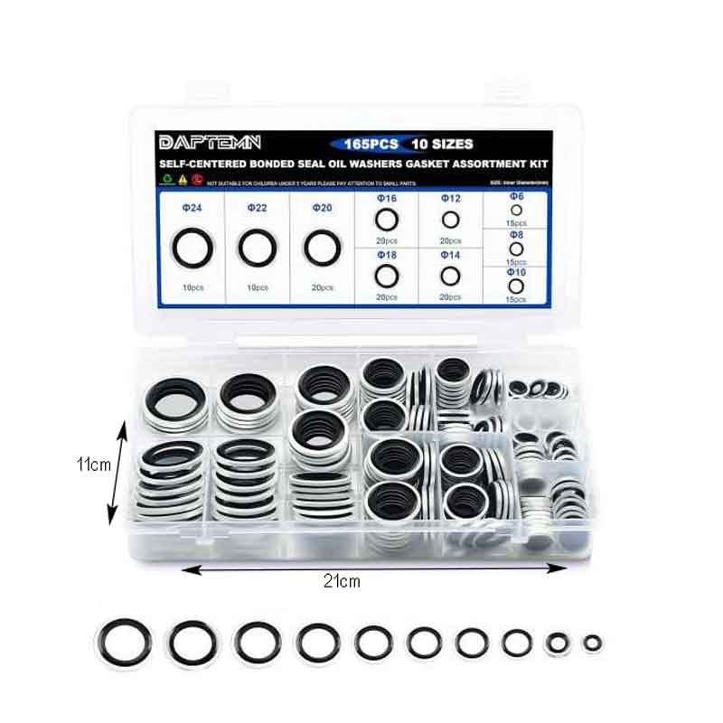 Σετ Τσιμούχες Στεγάνωσης 165τμχ φ6 – φ24 – Self-Centered Bonded Seal Oil Washers Gasket Assortment Kit