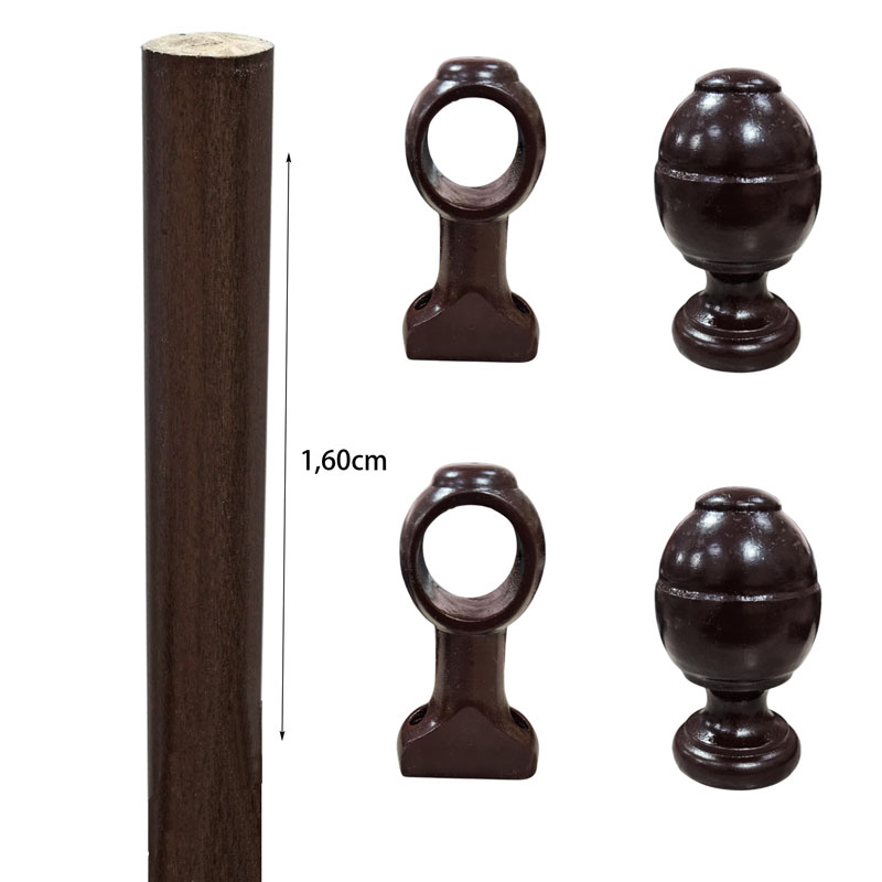 Σετ ξύλινο κουρτινόξυλο σε καφέ σκούρο χρώμα.
