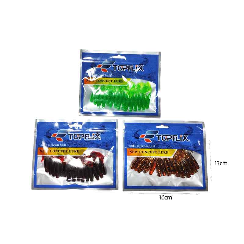 Ανθεκτικά και ευέλικτα δολώματα σιλικόνης από την TopFlix, ιδανικά για ερασιτεχνικό και επαγγελματικό ψάρεμα. Το σετ περιλαμβάνει πολλαπλά τεχνητά δολώματα σε έντονα χρώματα, κατάλληλα για διάφορα είδη ψαριών. Κατασκευασμένα από μαλακή σιλικόνη, προσφέρουν ρεαλιστική κίνηση μέσα στο νερό για μεγαλύτερη αποτελεσματικότητα.