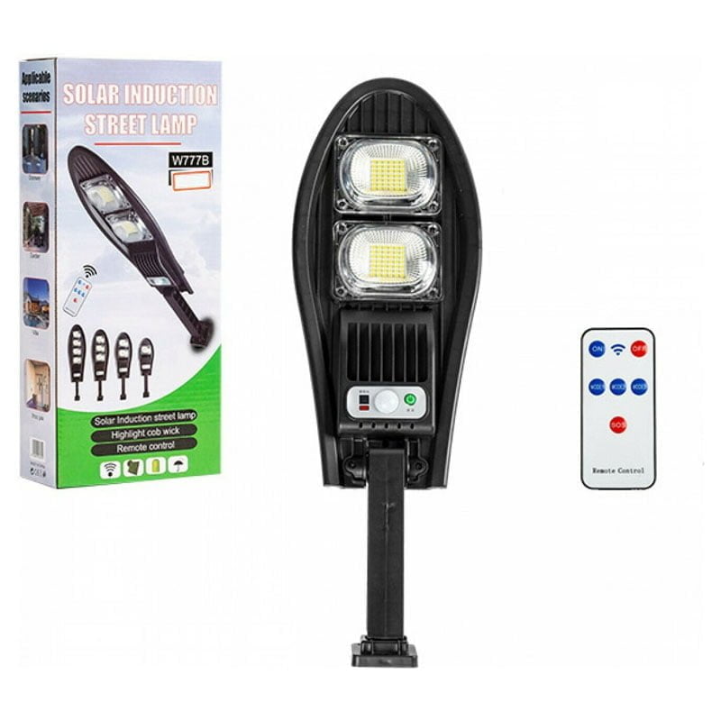 Στεγανό Ηλιακό Φωτιστικό Δρόμου IP65 με Ανιχνευτή Κίνησης, Αισθητήρα Φωτός και Τηλεχειριστήριο σε Μαύρο Χρώμα W777B – LED solar street lamp