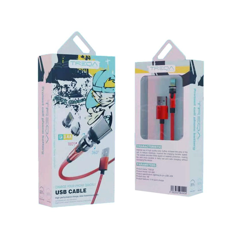 Treqa CA-847 Μαγνητικό Καλώδιο Φόρτισης 3.4A 180° 3 σε 1 Lightning – USB-C – MicroUSB 1m – Magnetic 3 in 1 Cable Type C. Lighting And V8 3.4A