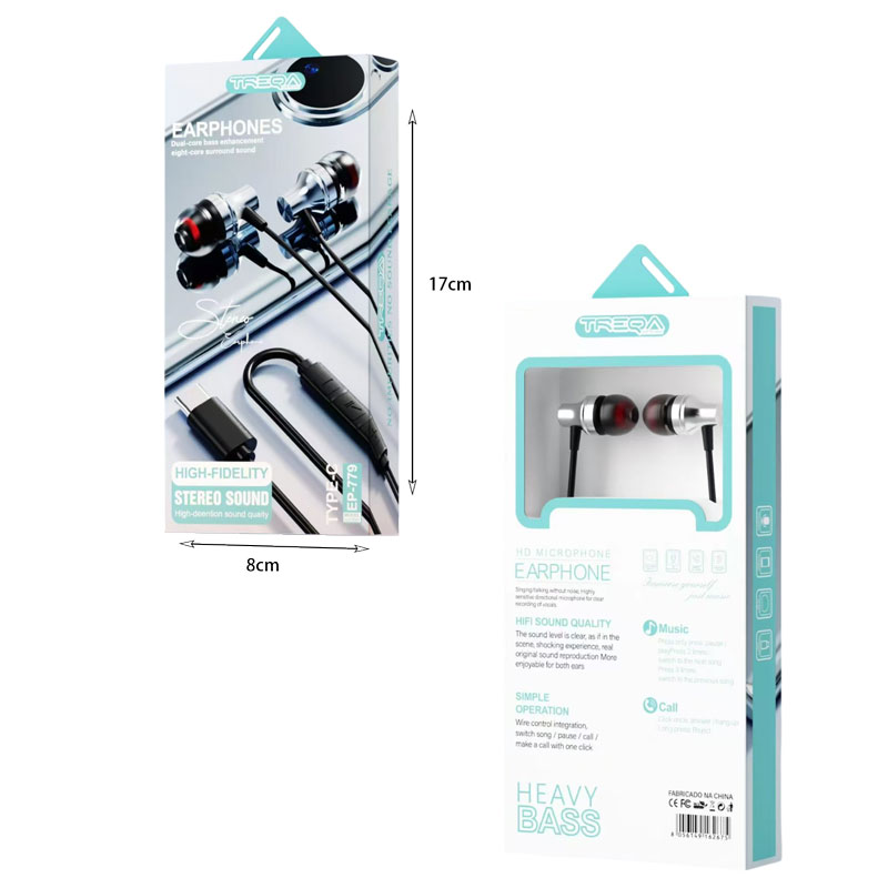 Treqa Ενσύρματα Ακουστικά Type-C EP-779 – Stereo Sound Earphones