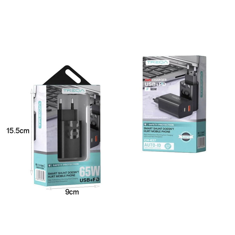Treqa φορτιστής 65W 1USB+PD CH-637 – GaN Charger