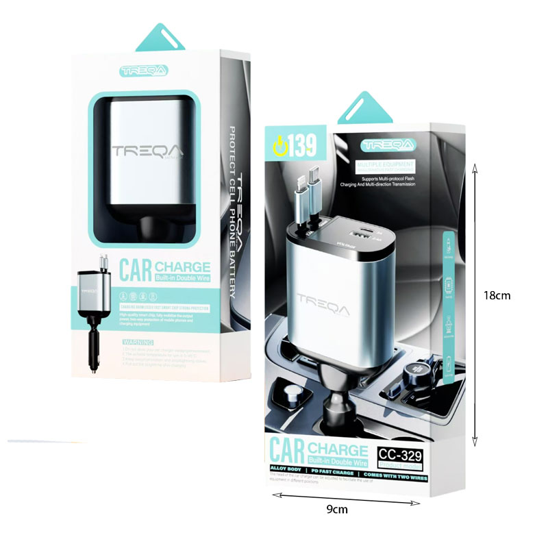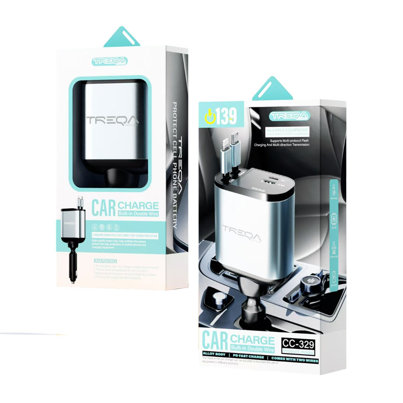 Με θύρα usb και type-C και καλώδια type-C και iOs που μπορούν να χρησιμοποιηθούν ταυτόχρονα για φόρτιση 2 συσκευών.