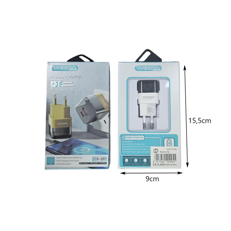 Treqa Φορτιστής Γρήγορης Φόρτισης 38W CS-237 – Quick Charging