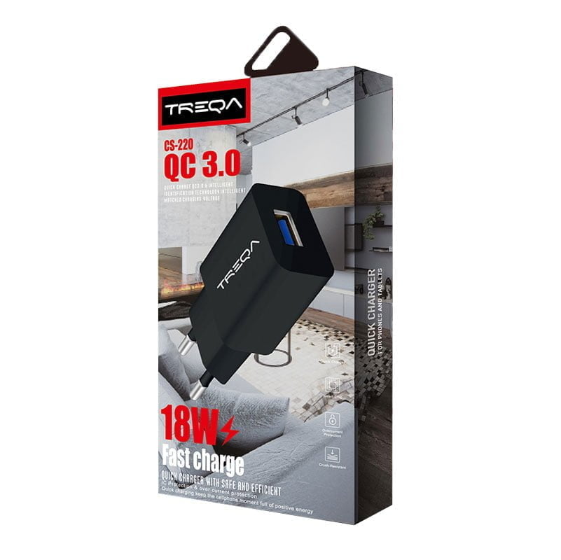 Treqa Φορτιστής κινητού με γρήγορη φόρτιση και καλώδιο 18W QC 3.0 καλώδιο Micro/V8 CS-220